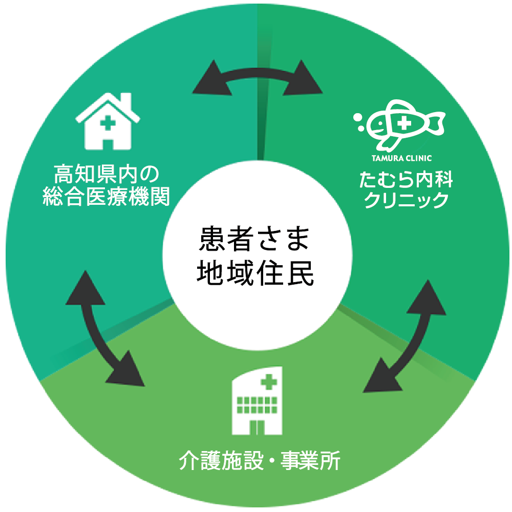 難病や専門的な診断や治療の必要な場合は高知大学附属病院、高知医療センター、国立高知病院、高知赤十字病院、近森病院などに紹介や連携診療いたします。